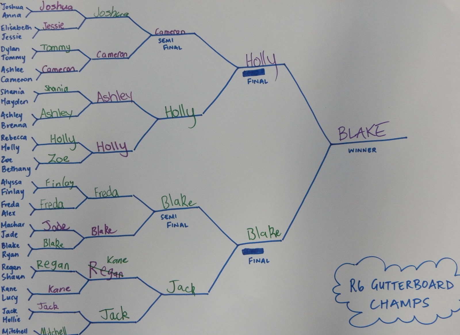 Over the past week, we have been competing in the Room 6 Gutterboard Championships! Not only does this game help to develop superb ball skills, but it's good fun too! Positions were drawn at random, and then each game was played in a 'best of three' style during break times. Congratulations to Holly and Blake, the finalists. We all watched the final, which Blake won. Well done Blake! Check out his road to the final: